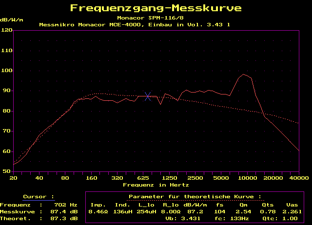 geschlossen (-3dB bei 106Hz) oder 7 l Bassreflex (-3dB bei 55Hz) !