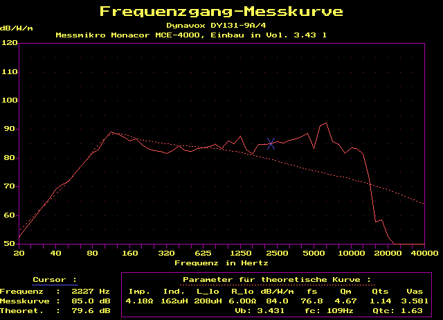Mittelhochton in 0.7 bis 2 l geschlossenen (-3dB bei 136 bis 151 Hz).
