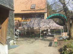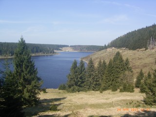 Wärme ist selbst Gehen keine Erholung. Beim wolkenlosen Himmel bekomme ich Angst, ob mein vorher aufgetragener Sonnenschutz auch für den ganzen Tag langt, doch es reichte. Oben am Brocken schaue ich in jedes Gebäude sowie den Bahnhof hinein. Wenn ich bedenke, wie kalt und zugig es an so einem warmen Frühlingstag dort oben ist, möchte ich nicht bei schlechtem Wetter oben sein ! Sobald man jedoch die letzten 50 Höhenmeter wieder unter die Baumgrenze gelangt, wird es wieder spürbar wärmer. Auf dem Bergabweg vom Brocken runter überholt mich der zweite spätere Sieger Michael Wagner, somit bin ich auf Platz 4. Dann brauche ich Gehpausen und noch kurz vor dem Extra-VP von Michael Teinert bei km73 am Wasserfall in Königshütte (ganz toller Platz !) muss ich mich setzen und trinken. Und während ich dann am VP sitze, trifft mit Urs auf der Maur bereits der 5. Läufer ein. Gemeinsam brechen wir vom VP auf. Da ich die folgenden km stabil mit ordentlichem Tempo durchlaufe, bringe ich Abstand vor Urs und rechne bereits hoch, wann ich zu Kaffee und Kuchen in Rübeland eintreffe. Doch wegen dem gravierenden Verlaufer Nr. 3 hat Urs sogar den VP schon wieder verlassen, bis ich endlich dort bin. |
