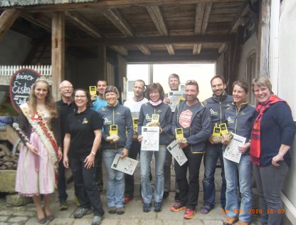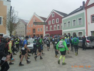 ist die Qualität der Jurasteig-Markierungen eindeutig schlechter. Nach dem letzten VP12 bei km 223 in Holnstein treffen wir 6 km vor Schluss auf Robert Gehlhaar, der dort Führende der langsamen Startgruppe. Nun zu dritt gehen wir bis ins Ziel, bis auf einen kleinen Abschnitt, wo ich vor Kälte bettele, nochmals zu laufen. In dieser zweiten Nacht wurde es nämlich eisig kalt. So kam ich nach 37:51 h am Sonntag früh um 4:51h im Ziel an ! Ich hatte zwar eine leicht bessere Zeit erwartet, doch da kannte ich die Strecke noch nicht. Der hiermit erreichte Platz 3 ist schon als Erfolg zu werten. Viele für 239km gemeldete Läufer beendeten bereits im 170km-Ziel und wenige gaben vorher auf. |
