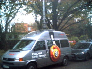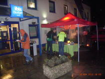 Die Gulaschkanone bringt Abendessen vors Ibis-Hotel im strömenden Regen *2