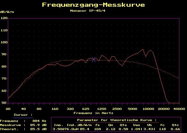 weich, 8cm Magnet, 90dB/W, fs:67.0Hz, Qts:0.45, Vas:4.77l,