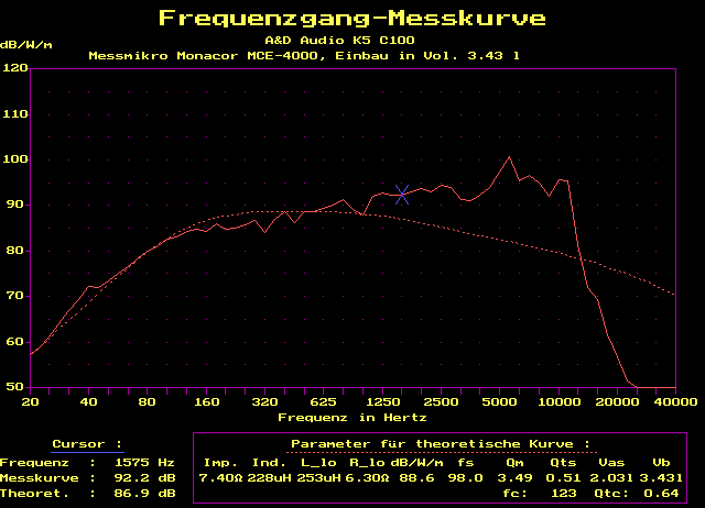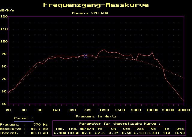 weich, 10cm Magnet, 92dB/W, fs:63.4Hz, Qts:0.64, Vas:6.49l,