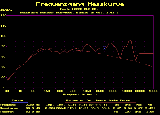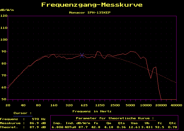 Mittelhochton in 0.7 bis 2 l geschlossenen (-3dB bei 136 bis 151 Hz).