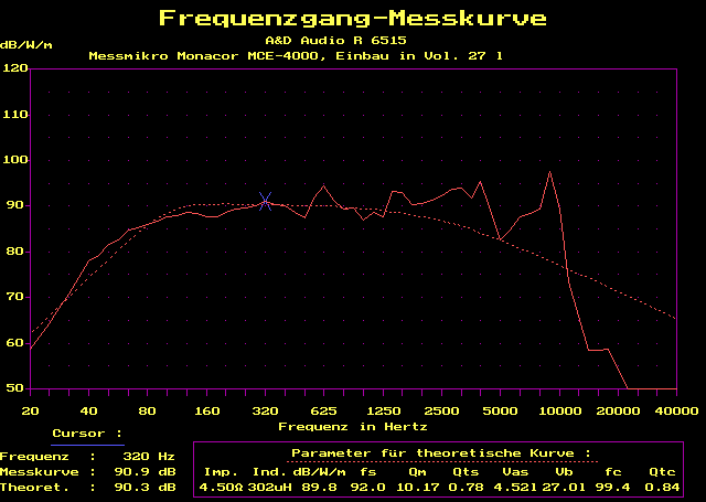 Einbau in 16 l geschlossen (-3dB bei 61Hz) oder 35 l Bassreflex