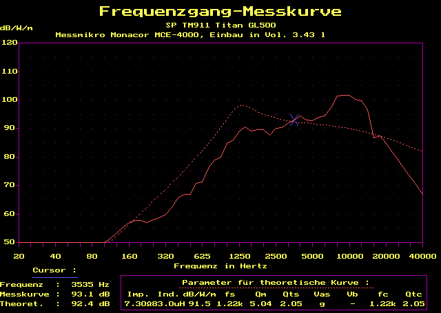 Trotz tiefer fs wegen niedrigem Q-Faktor doch erst ab 2.3 kHz