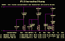 vorkonfigurierte Filtertypen. Ausgabe von Schaltplan, Frequenzgängen,
